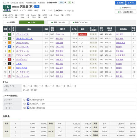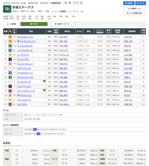 昨年度実績(秋GⅠ→12戦5勝)こちらの記事へ☟☟