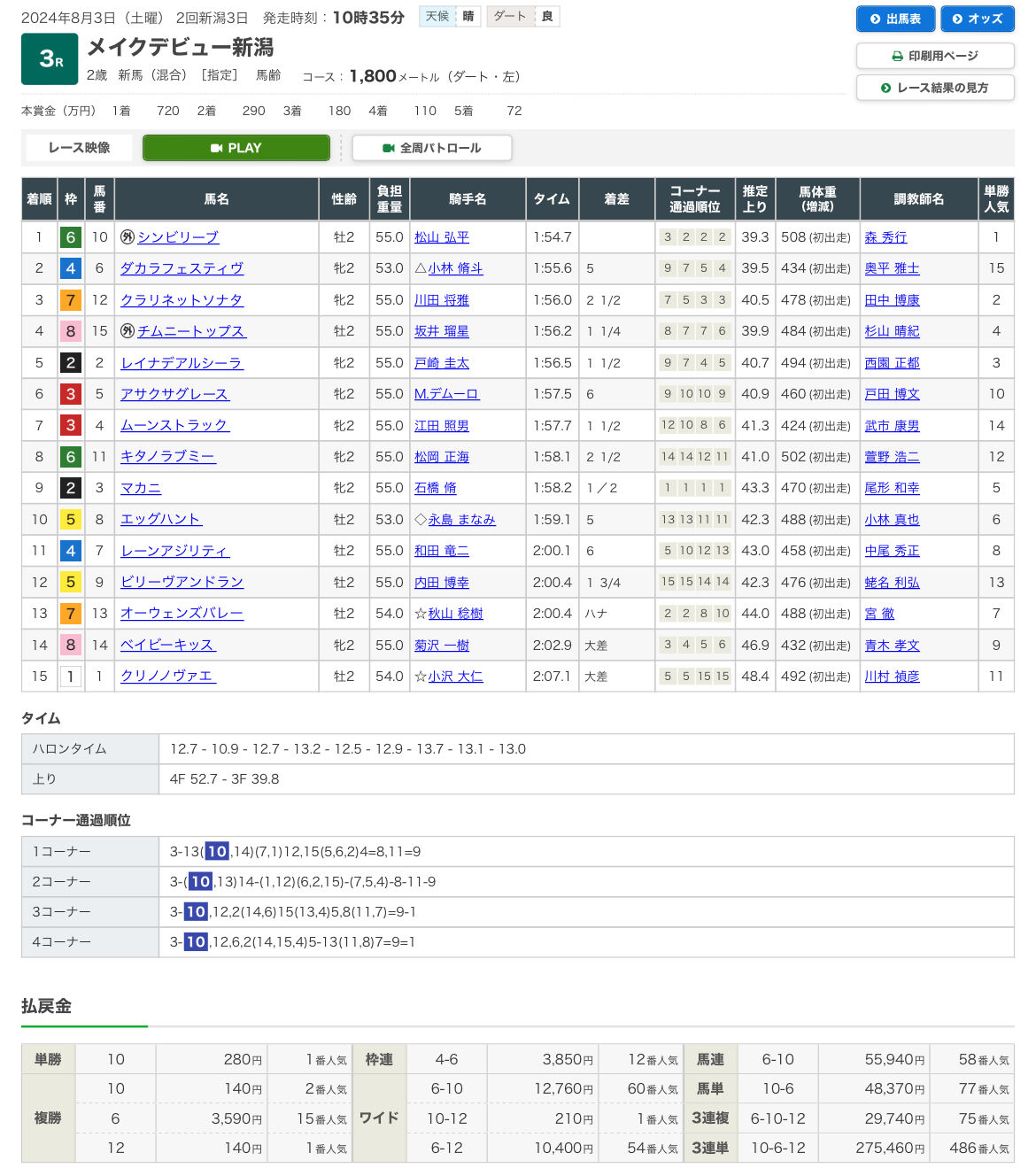 新馬戦だから出せる指数が限られてるからなぁ〜
