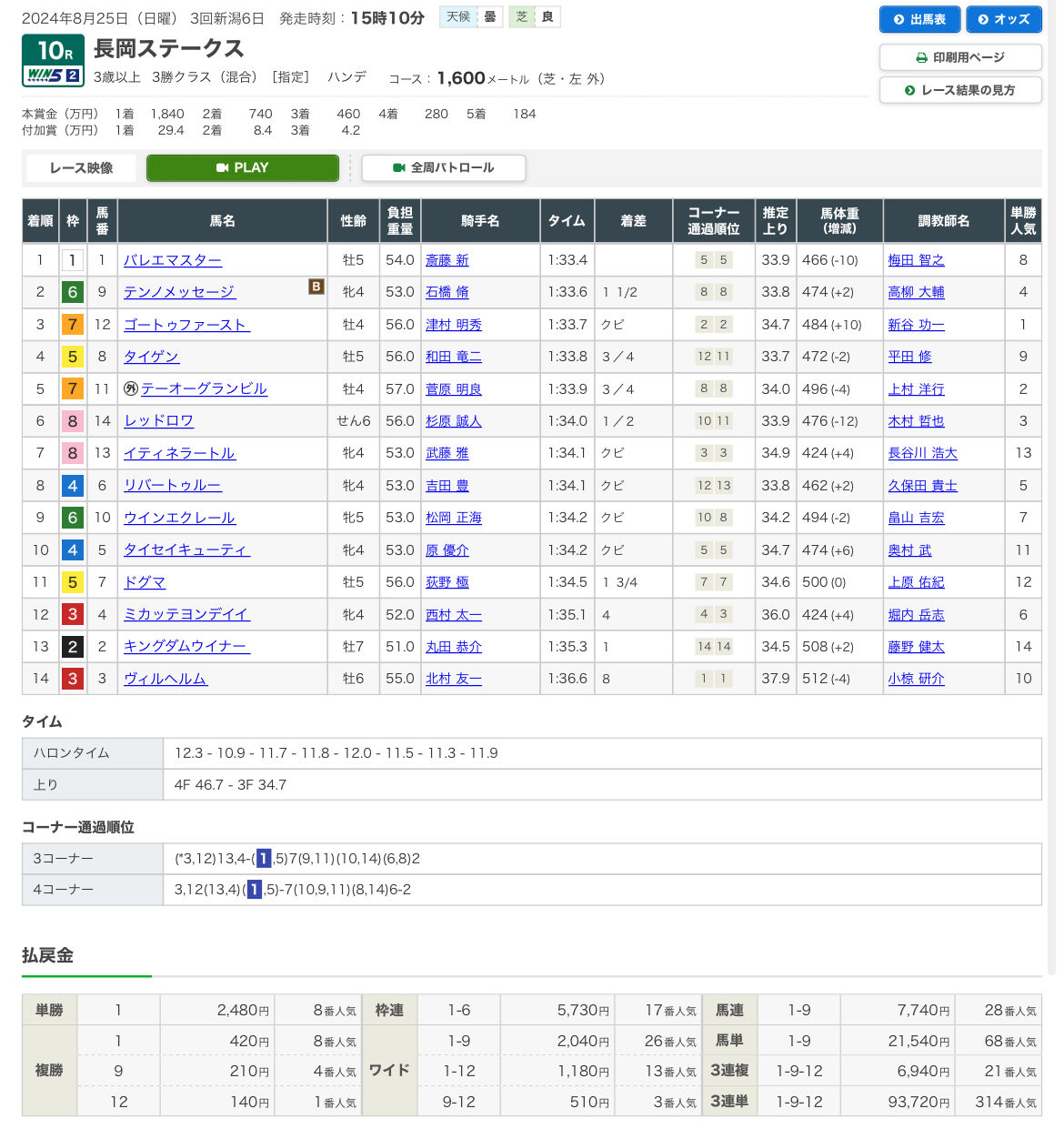 穴軸8番人気バレエマスターが激走1着でゴチっ😚👍