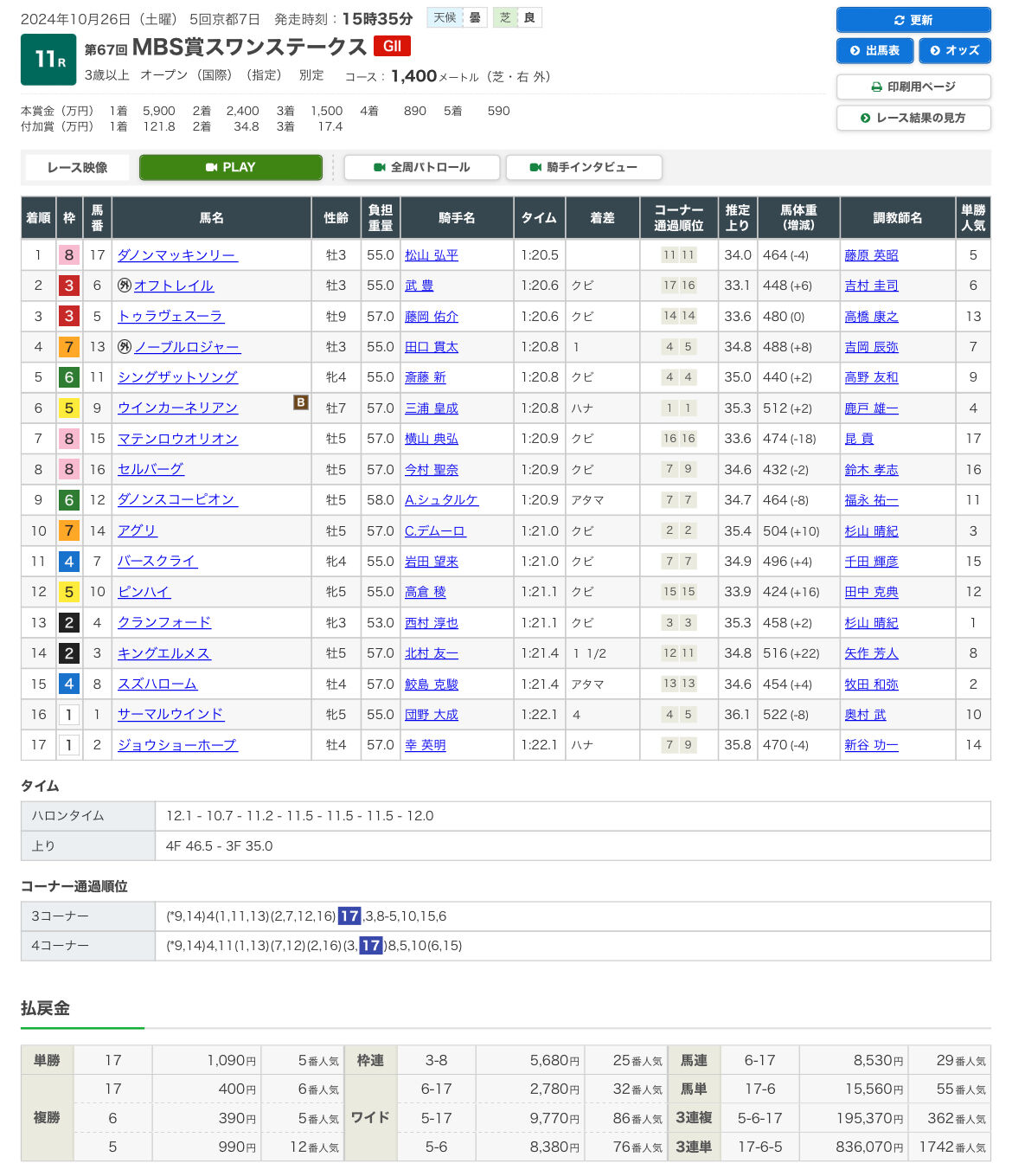 - 11月17日 マイルチャンピオンシップ 2024
