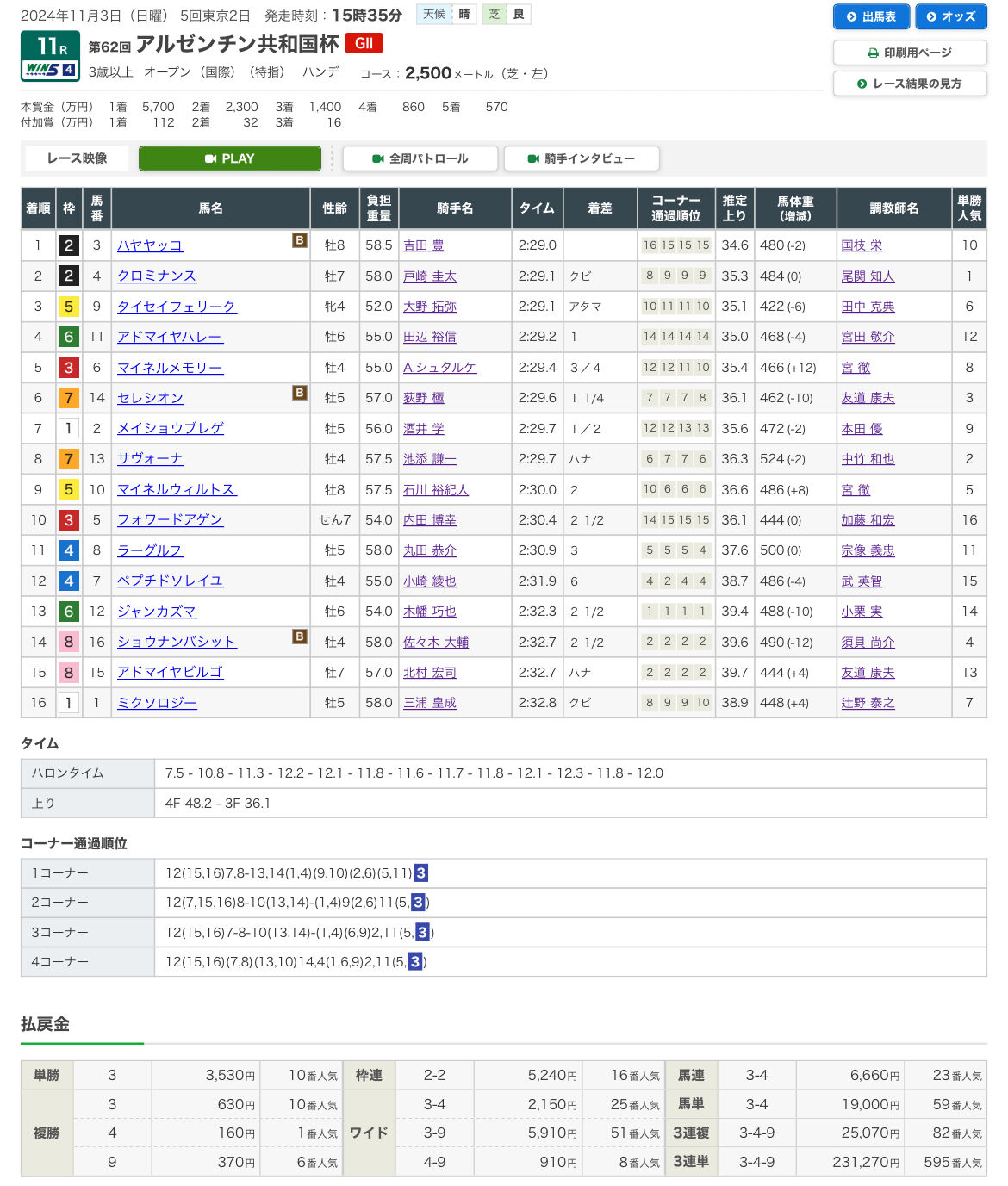 - 11月24日 ジャパンC 2024