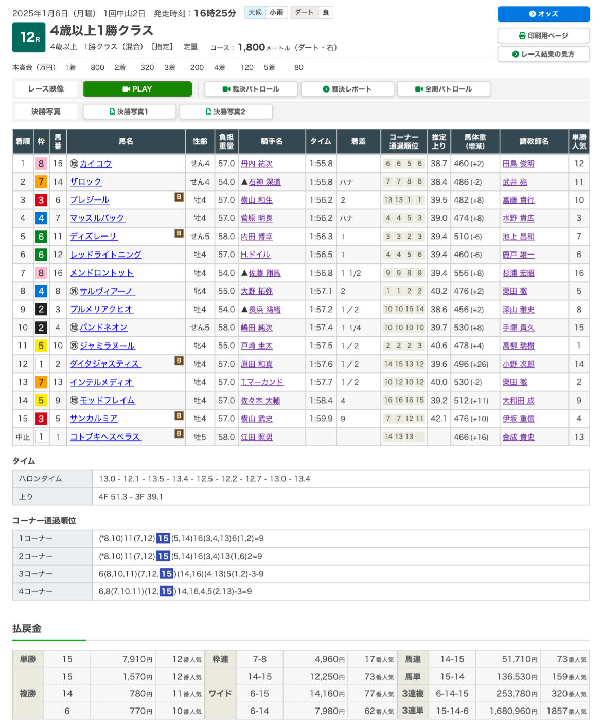 1/6月曜の【中央 最終競走特化コース】からお届けしたコチラ👇