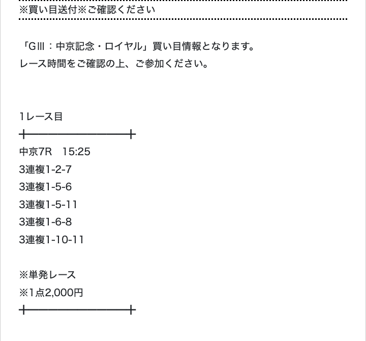 上記内容から実際に配信された買い目がコチラ👇