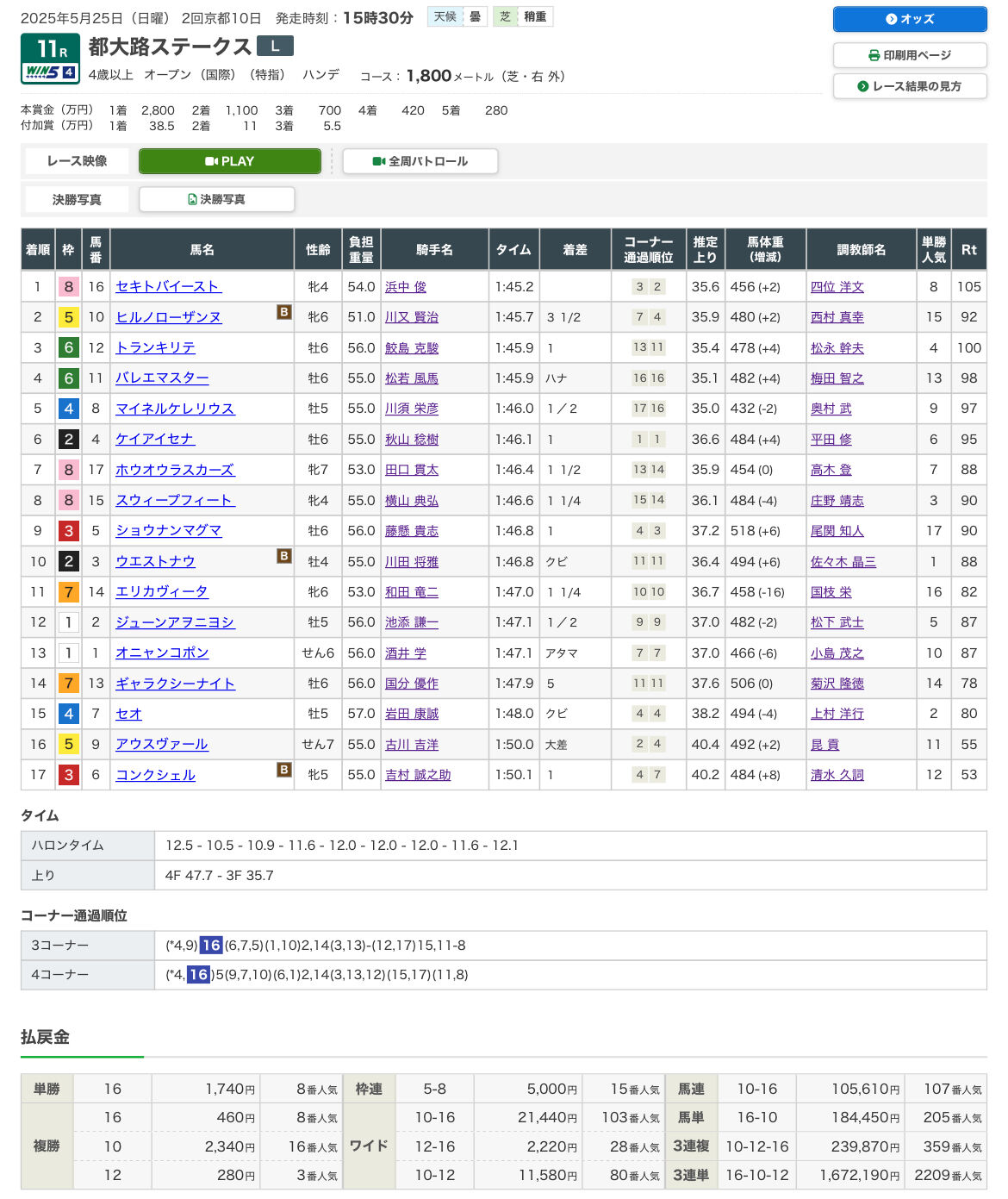 1着 16