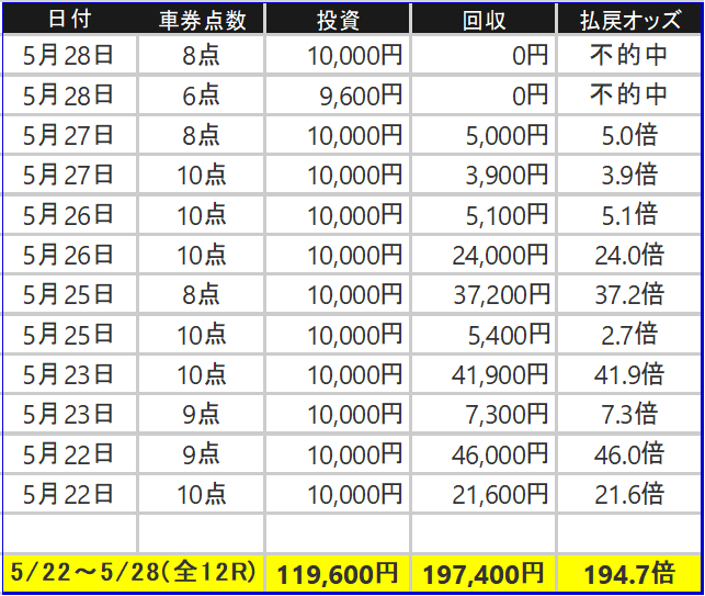 5/22〜5/28まで検証した無料予想の結果!