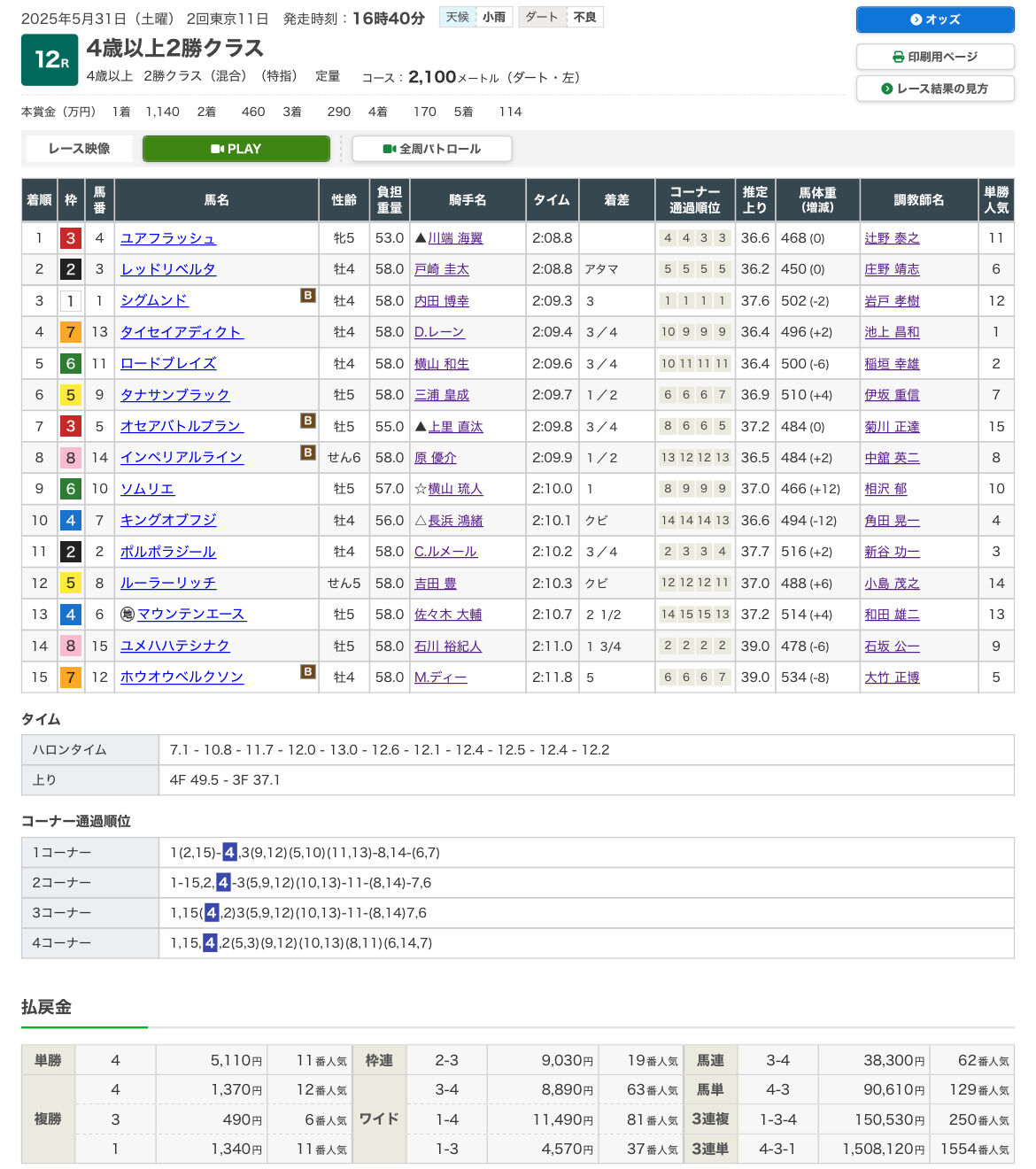 5/31は全12Rの公開、上記の馬券パターンで的中したのは以下の3Rだけ。